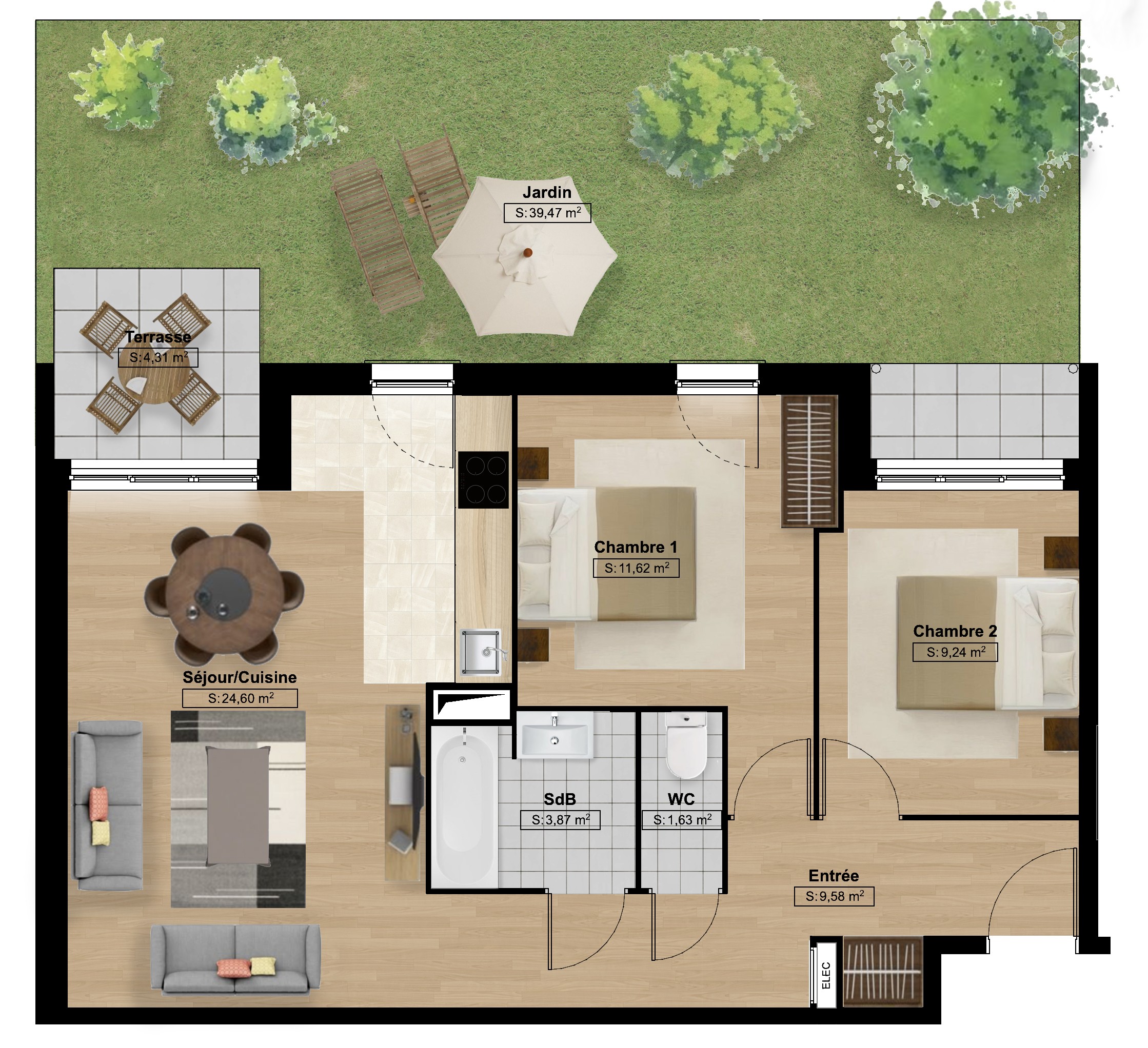 « Les Jardins d’Elsa », une résidence idéalement située proche de toutes commodités pour un cadre de vie idéal.