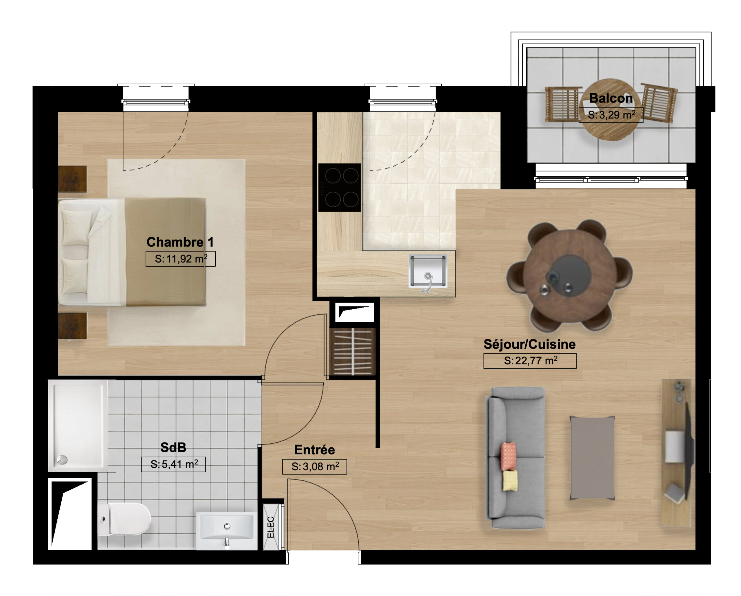 Cette résidence est composée du studio au 4 pièces avec des espaces extérieurs : balcons, jardins et terrasses pour la plupart des appartements, proposant un art de vivre unique.